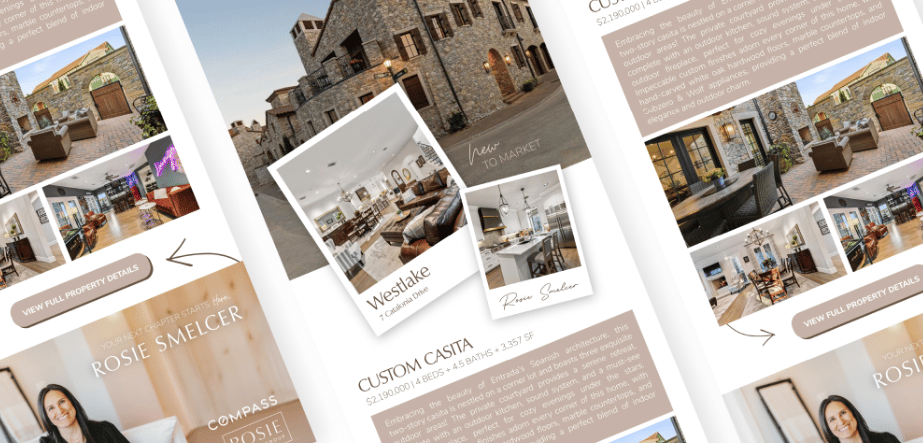 Our Rosie's Reflection Newsletter includes a Market Update, Featured Listings, a Business & Event of the month, and our Design Dose.